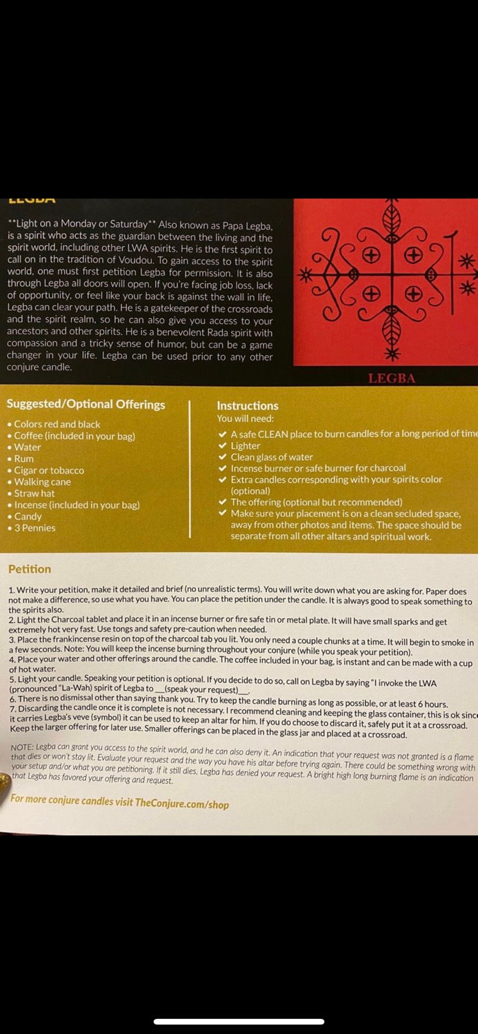 I’m going to light my legba candle this Saturday. I was wondering if anyone has any tips for a successful conjure. 🥺
